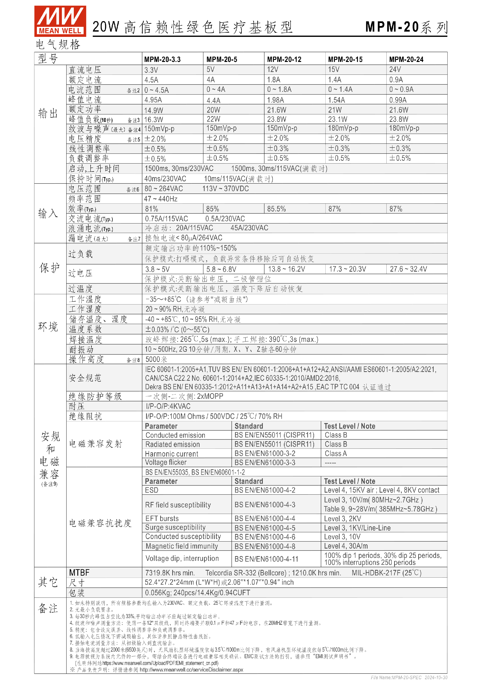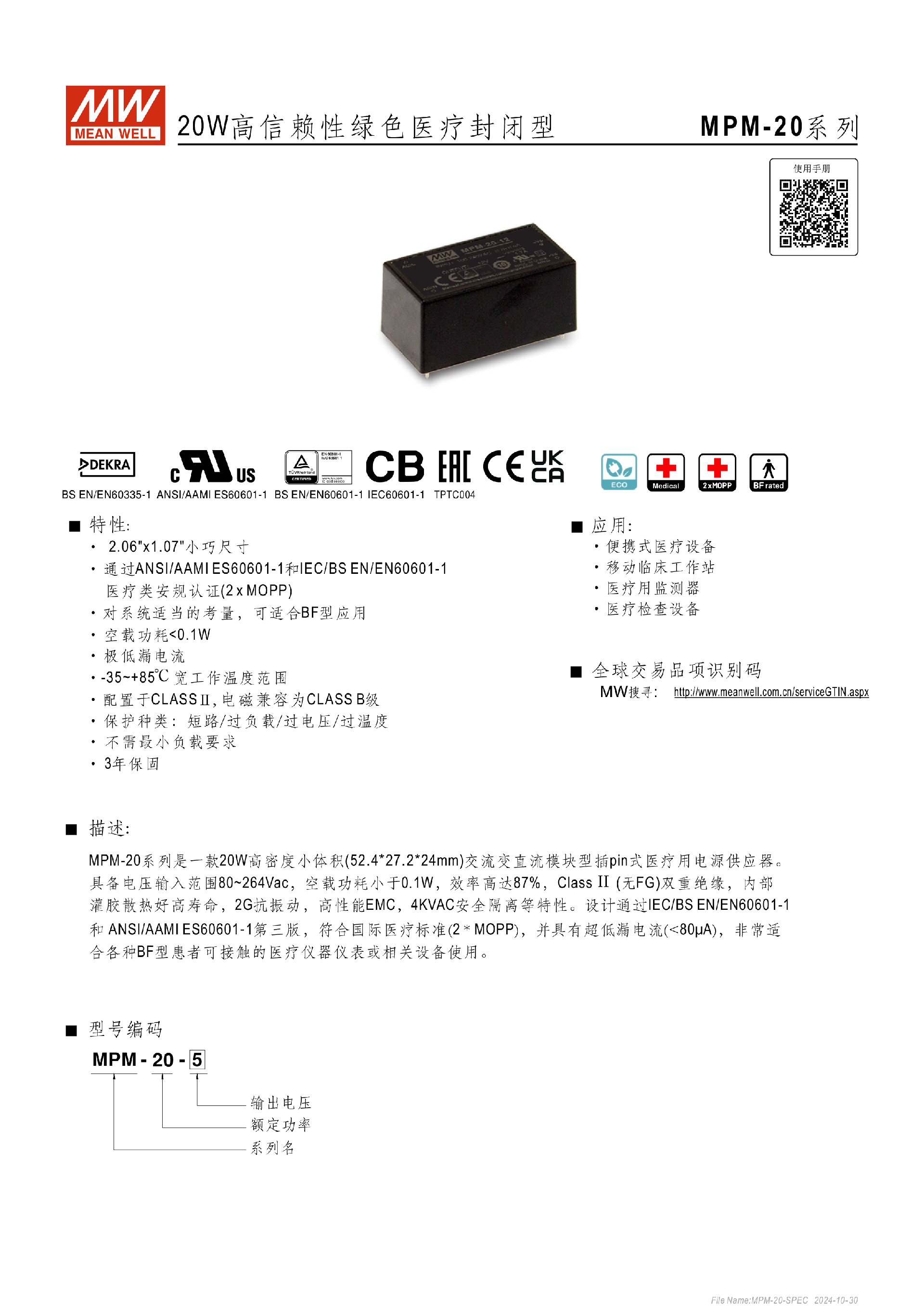 臺灣明緯MPM-20系列醫(yī)療封閉型電源供應器-醫(yī)療用 - 基板型-東莞市誠緯實業(yè)有限公司-