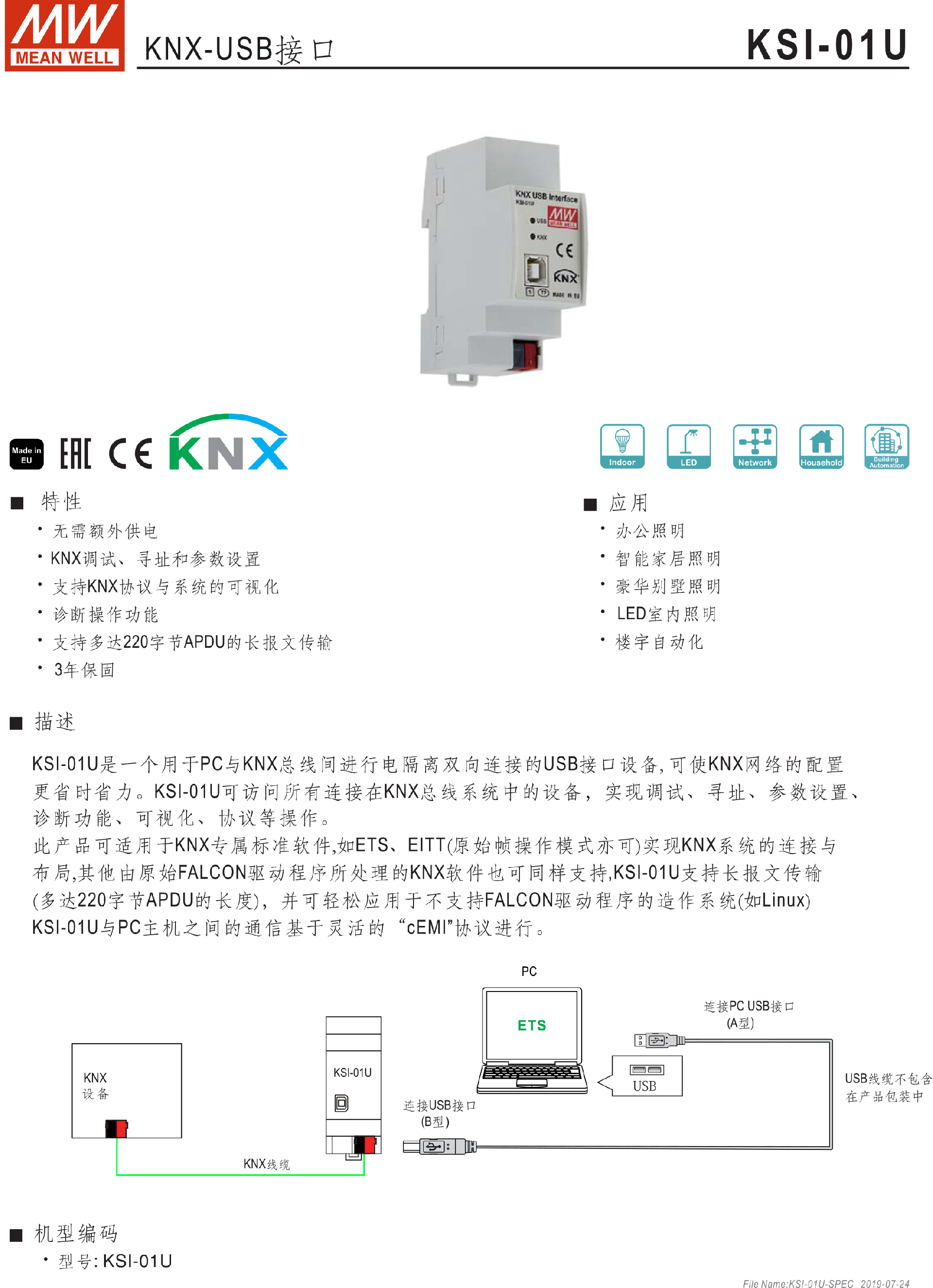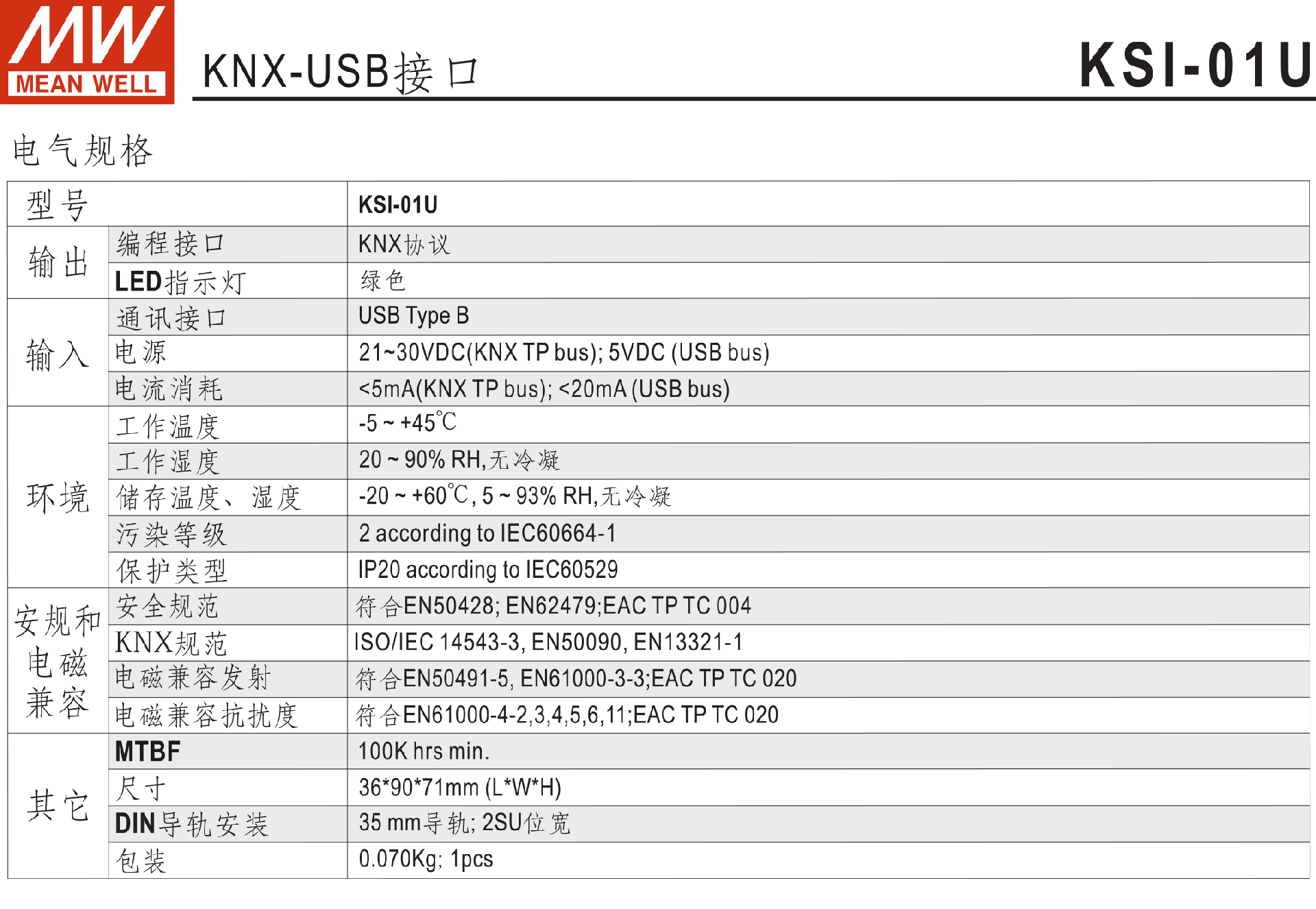 臺灣明緯KNX-USB接口KSI-01U-KNX系列-東莞市誠緯實業(yè)有限公司-