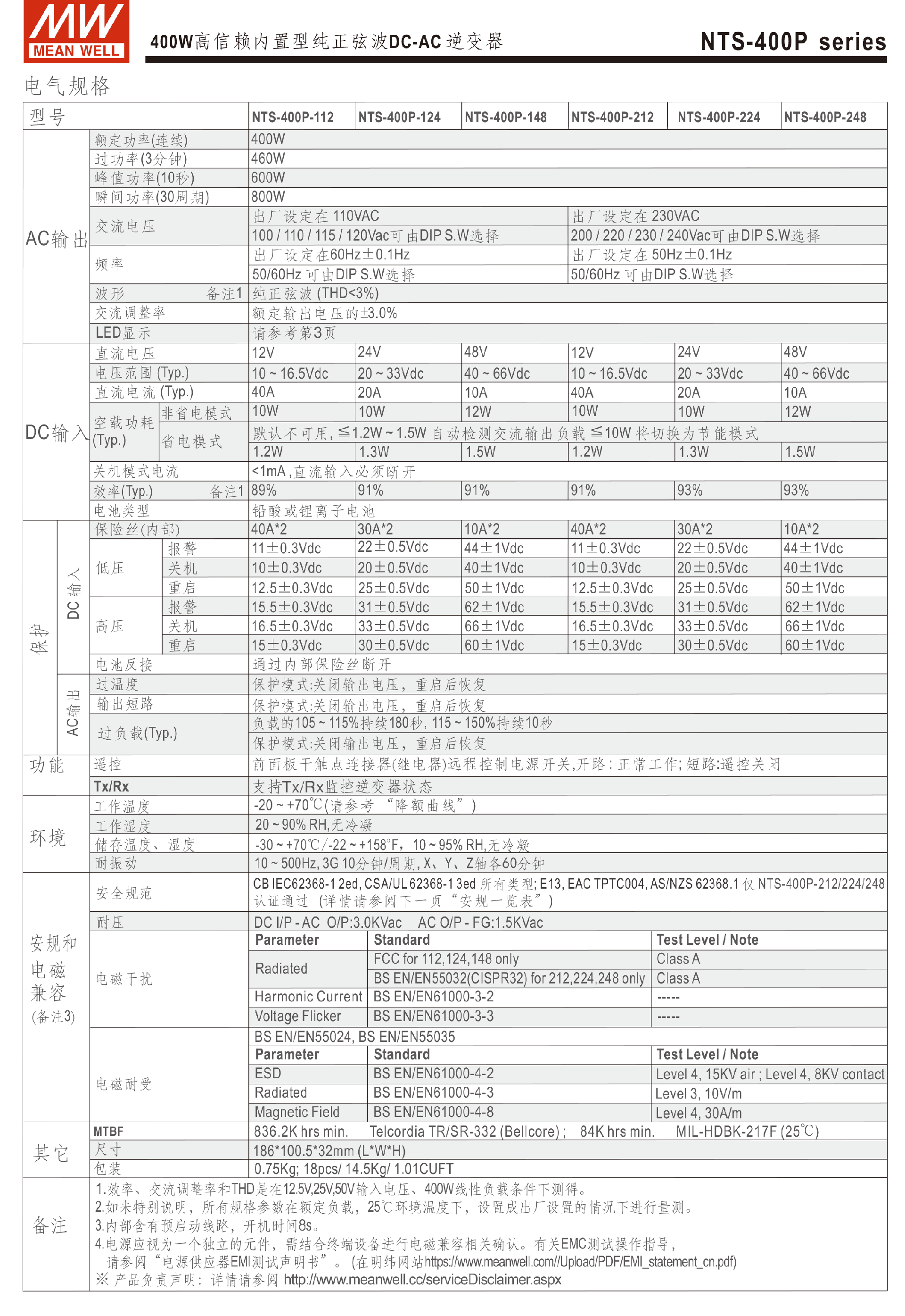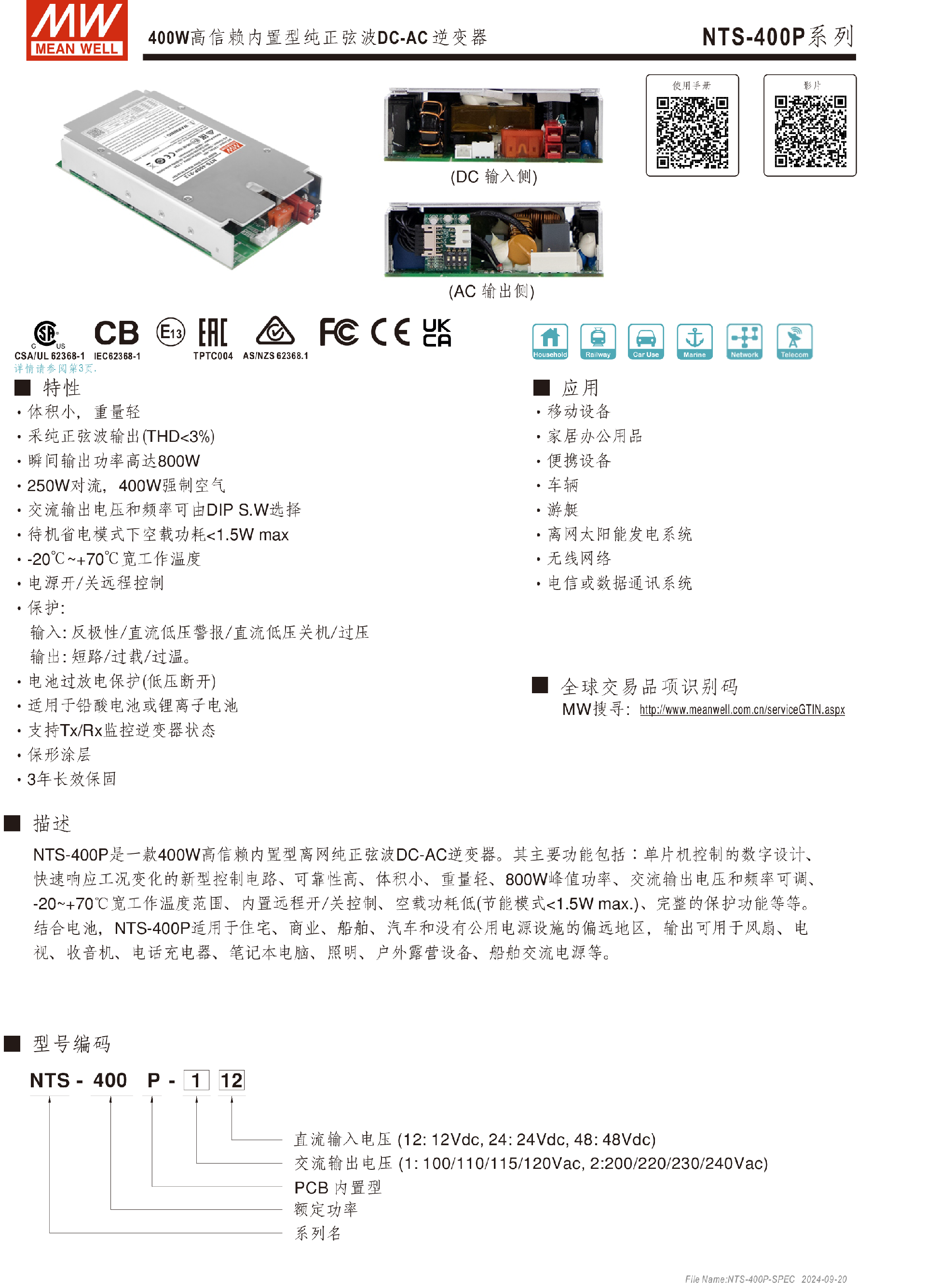 臺(tái)灣明緯NTS-400P系列DC-AC逆變器-NTS 系列 (置入型)-東莞市誠(chéng)緯實(shí)業(yè)有限公司-