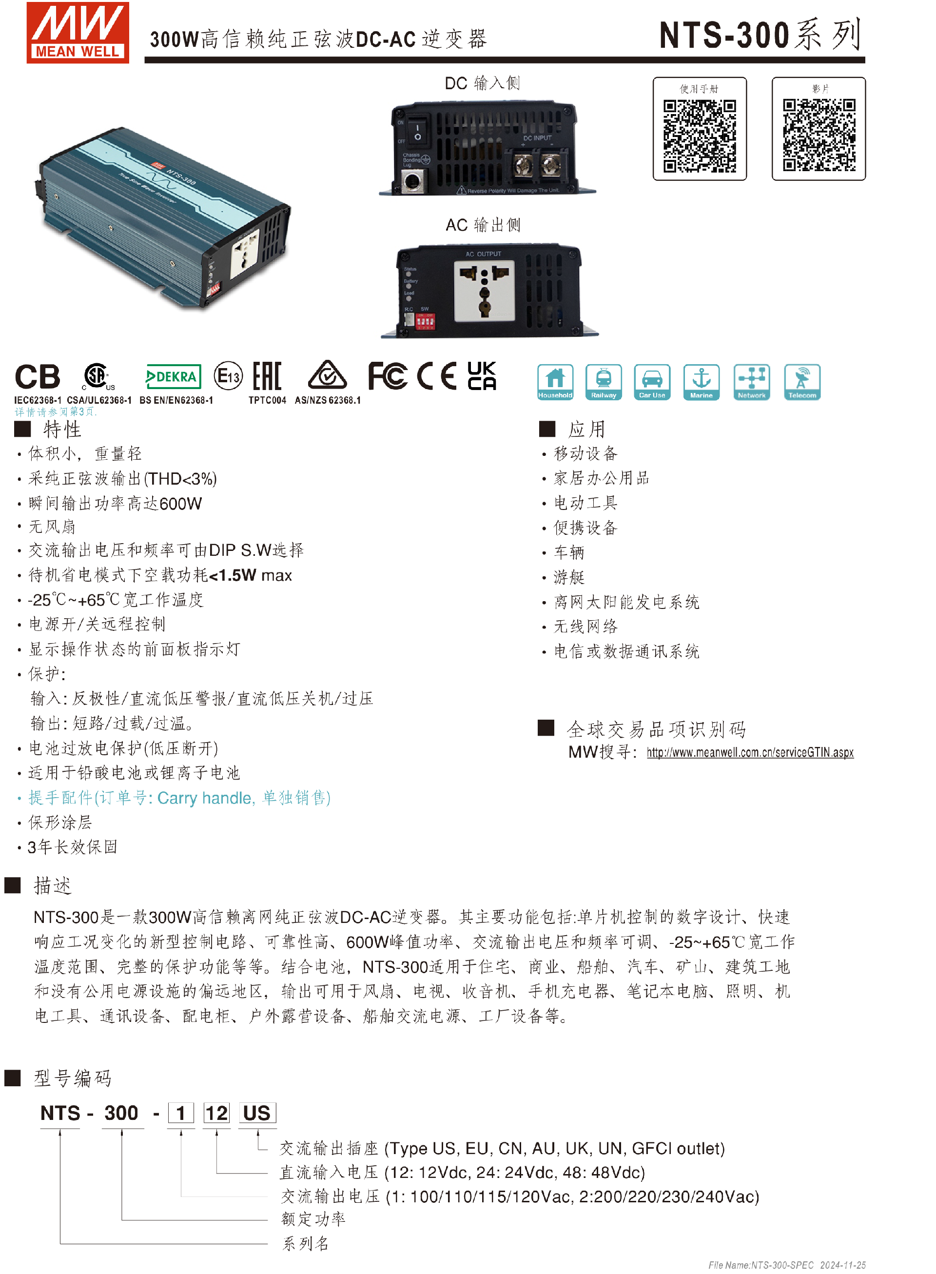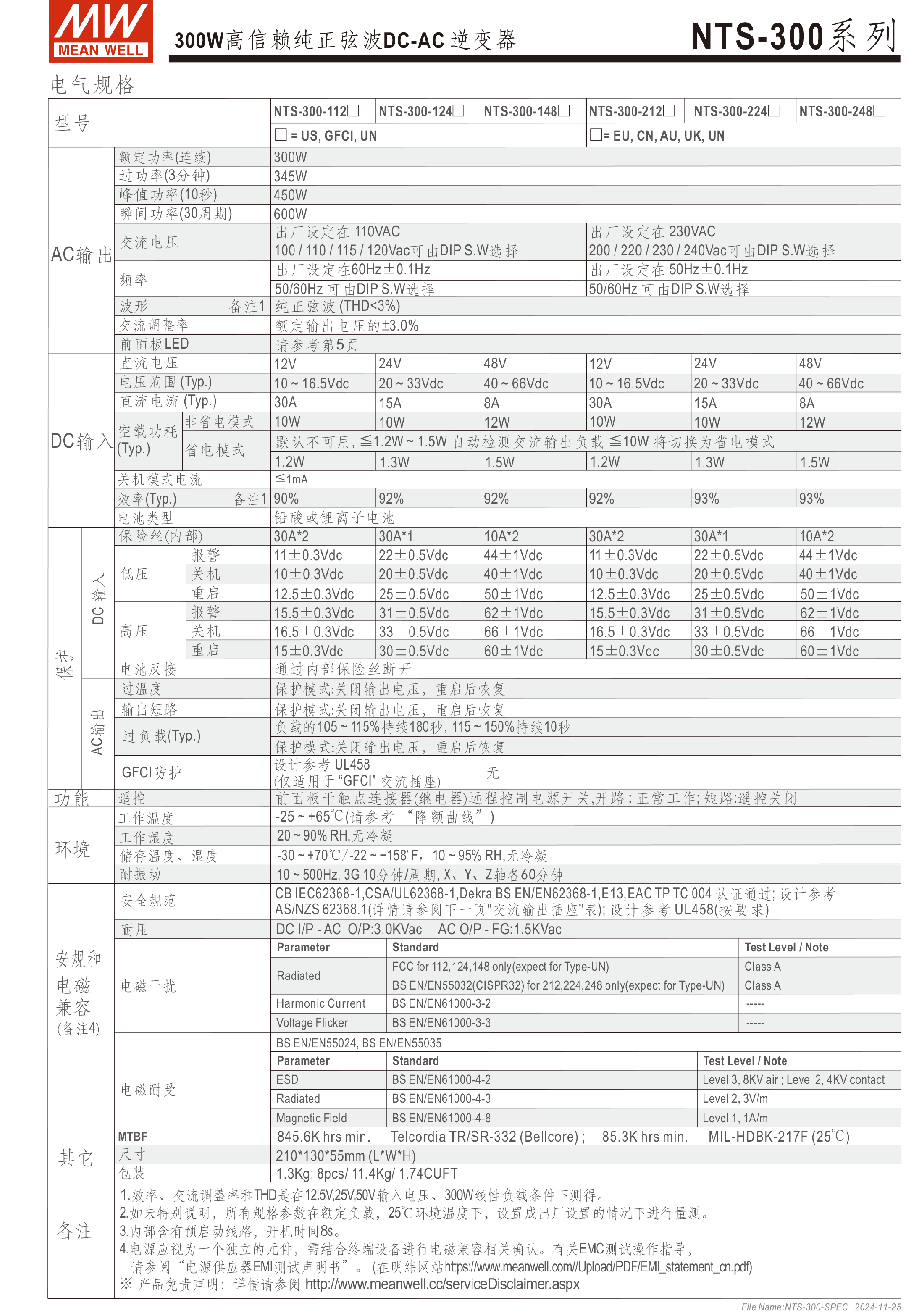 臺(tái)灣明緯NTS-450系列DC-AC逆變器
