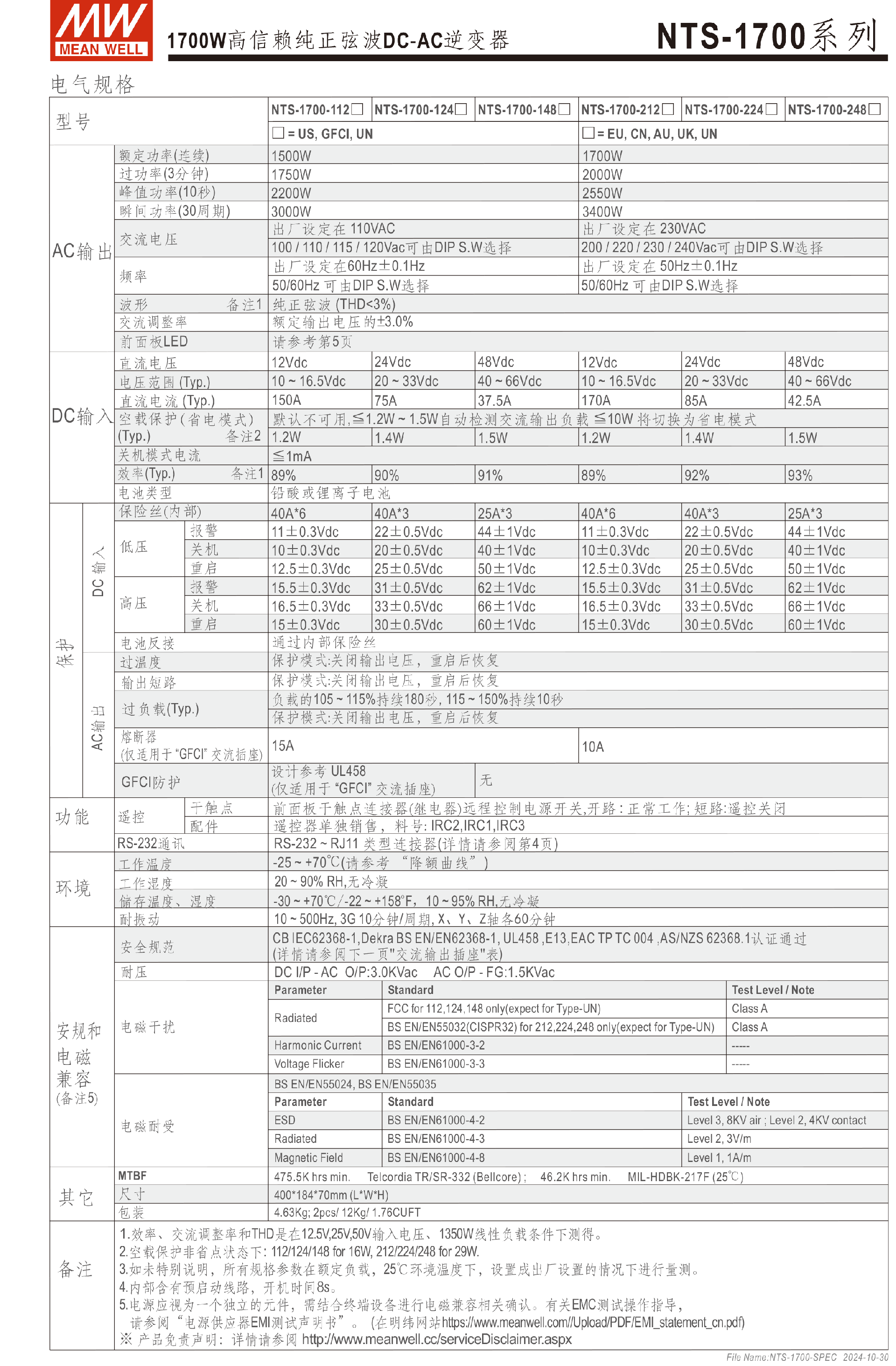 臺(tái)灣明緯NTS-1200系列DC-AC逆變器