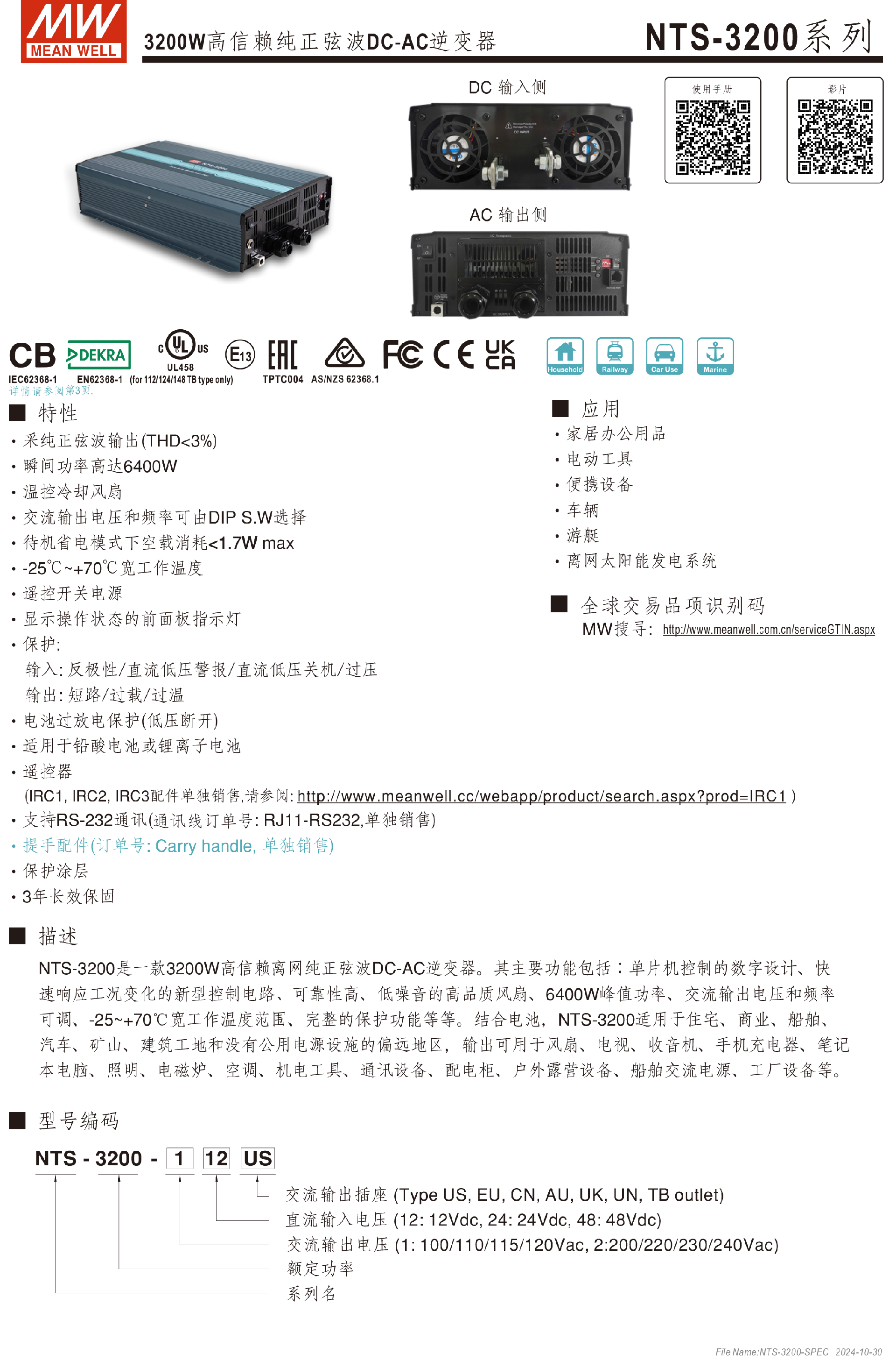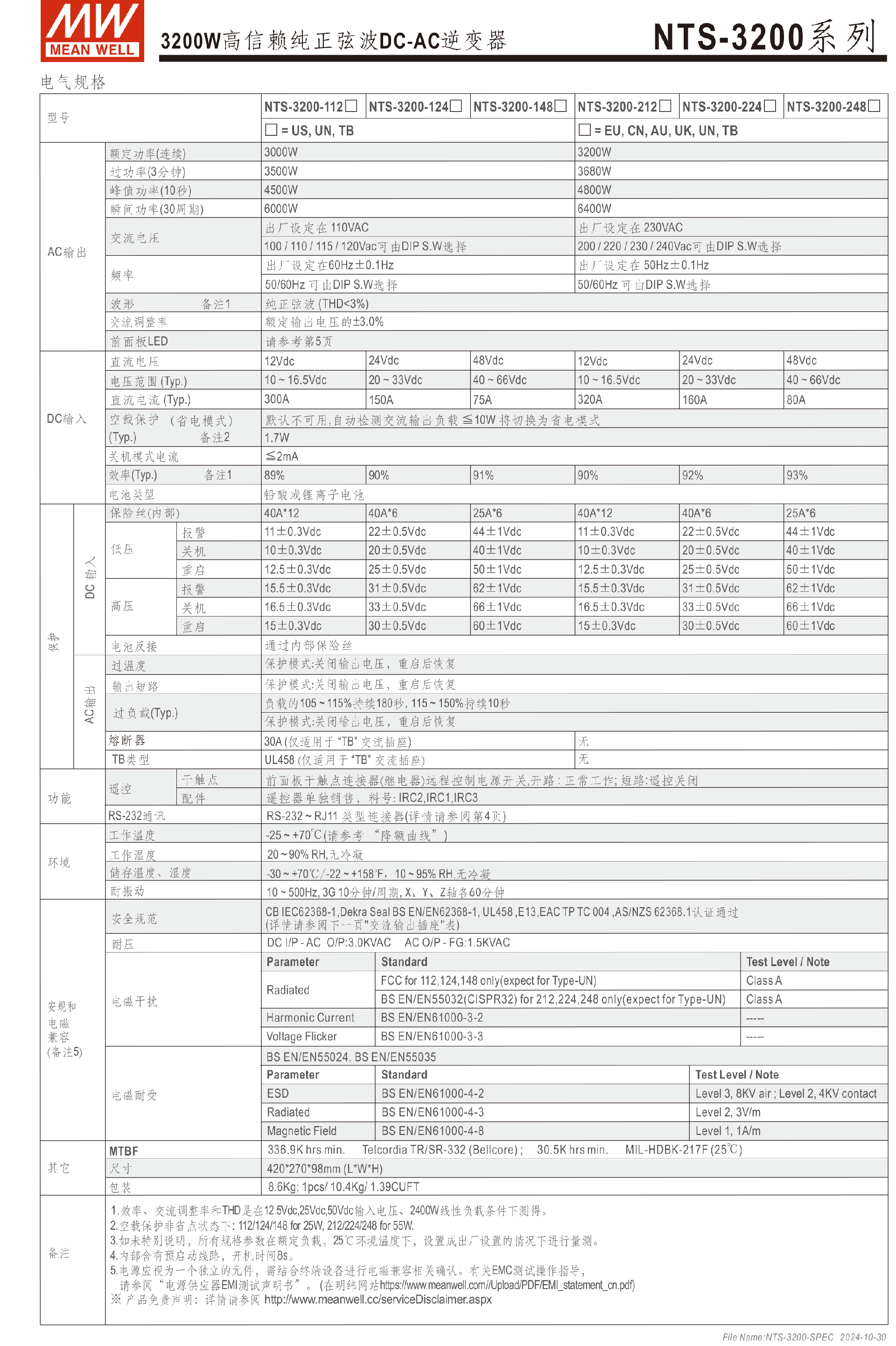 臺灣明緯NTS-3200系列DC-AC逆變器-NTS 系列-東莞市誠緯實業(yè)有限公司-