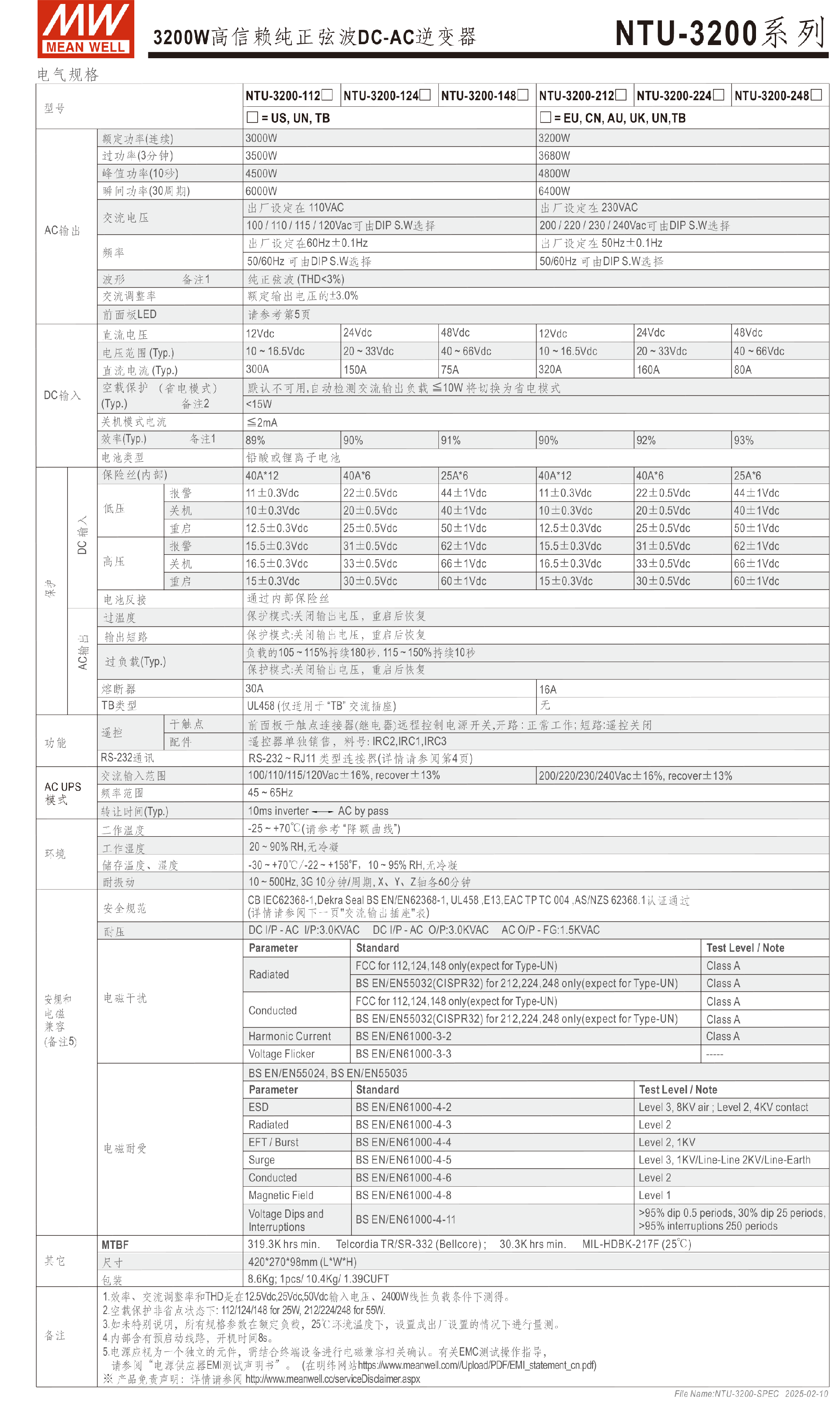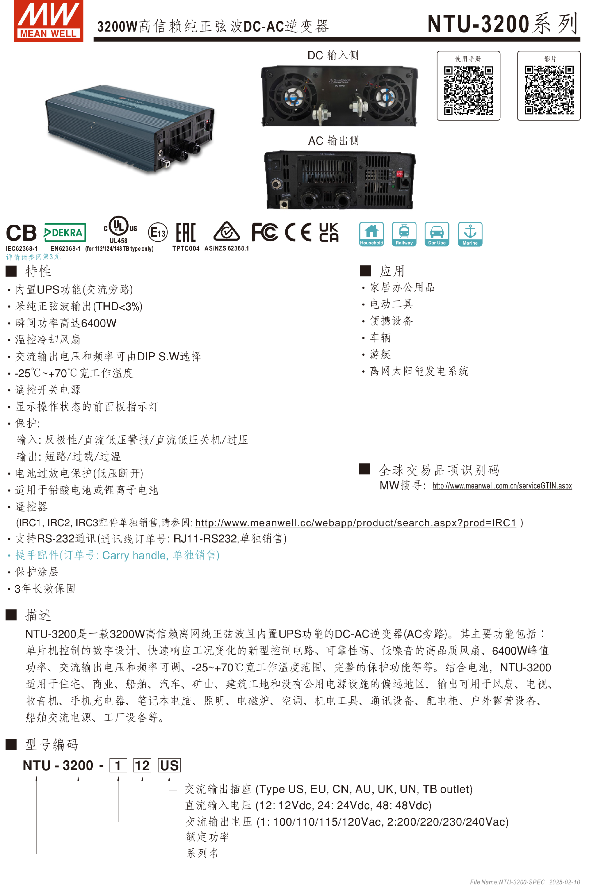 臺(tái)灣明緯NTU-3200系列DC-AC逆變器-NTU 系列-東莞市誠(chéng)緯實(shí)業(yè)有限公司-