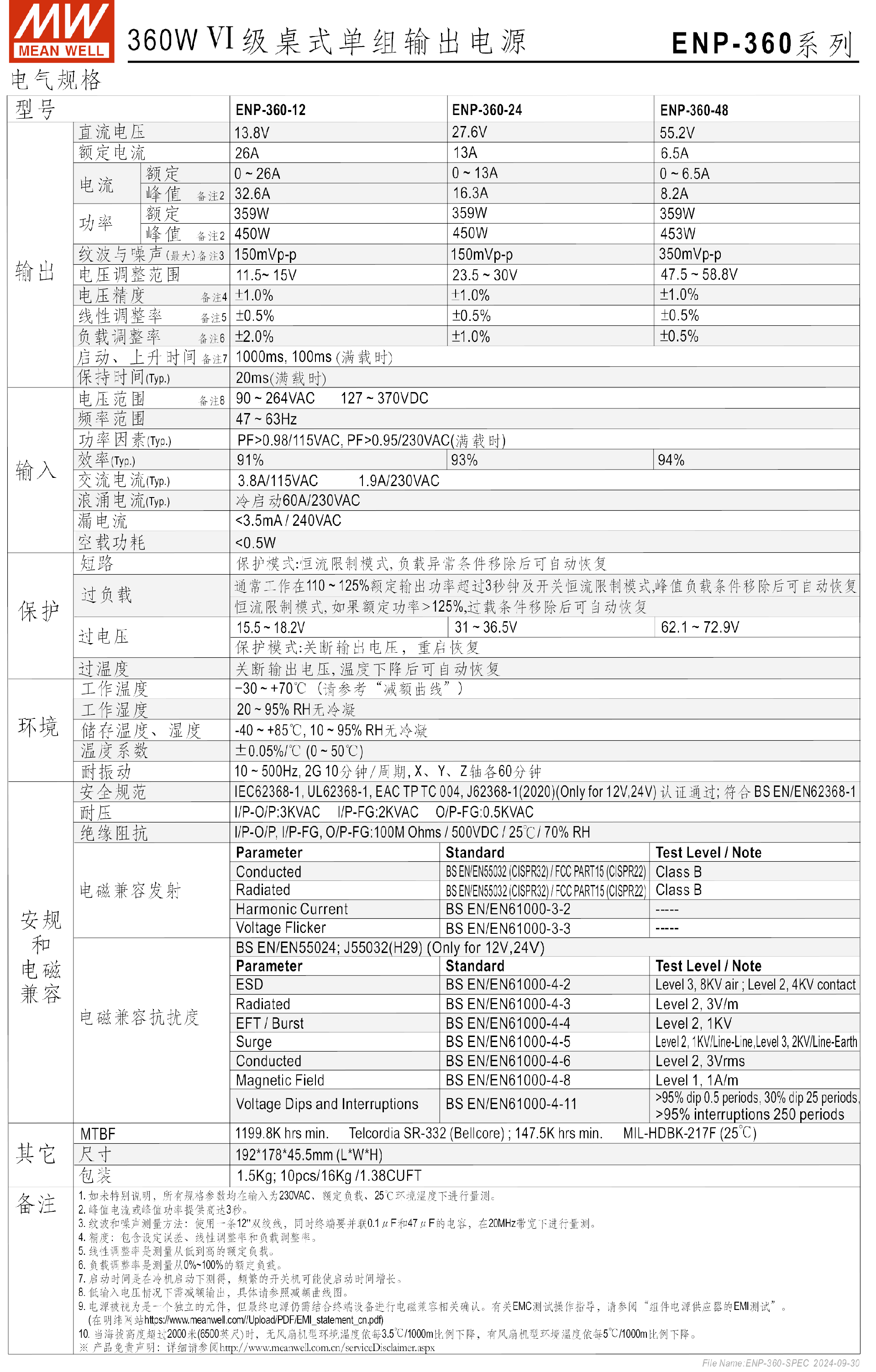 臺灣明緯ENP-240系列Ⅵ級桌式單組輸出電源