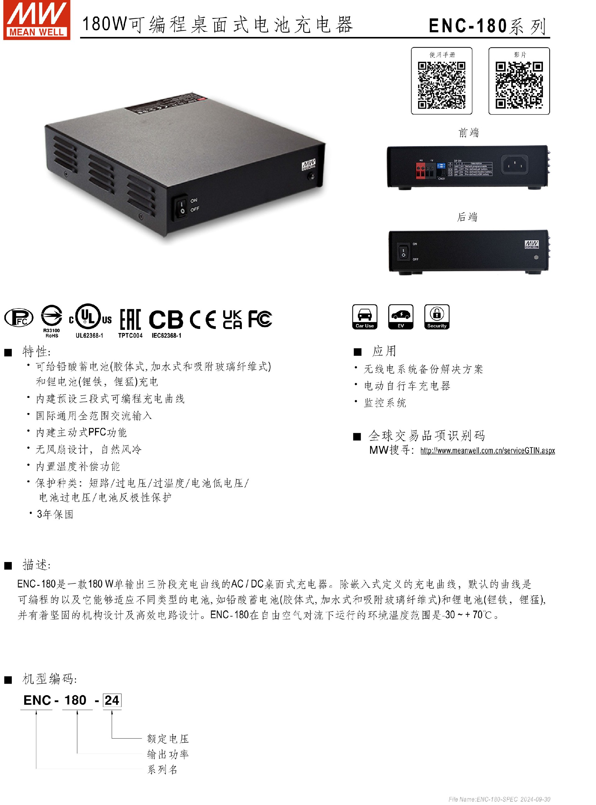 臺灣明緯ENP-180系列Ⅵ級桌式單組輸出電源