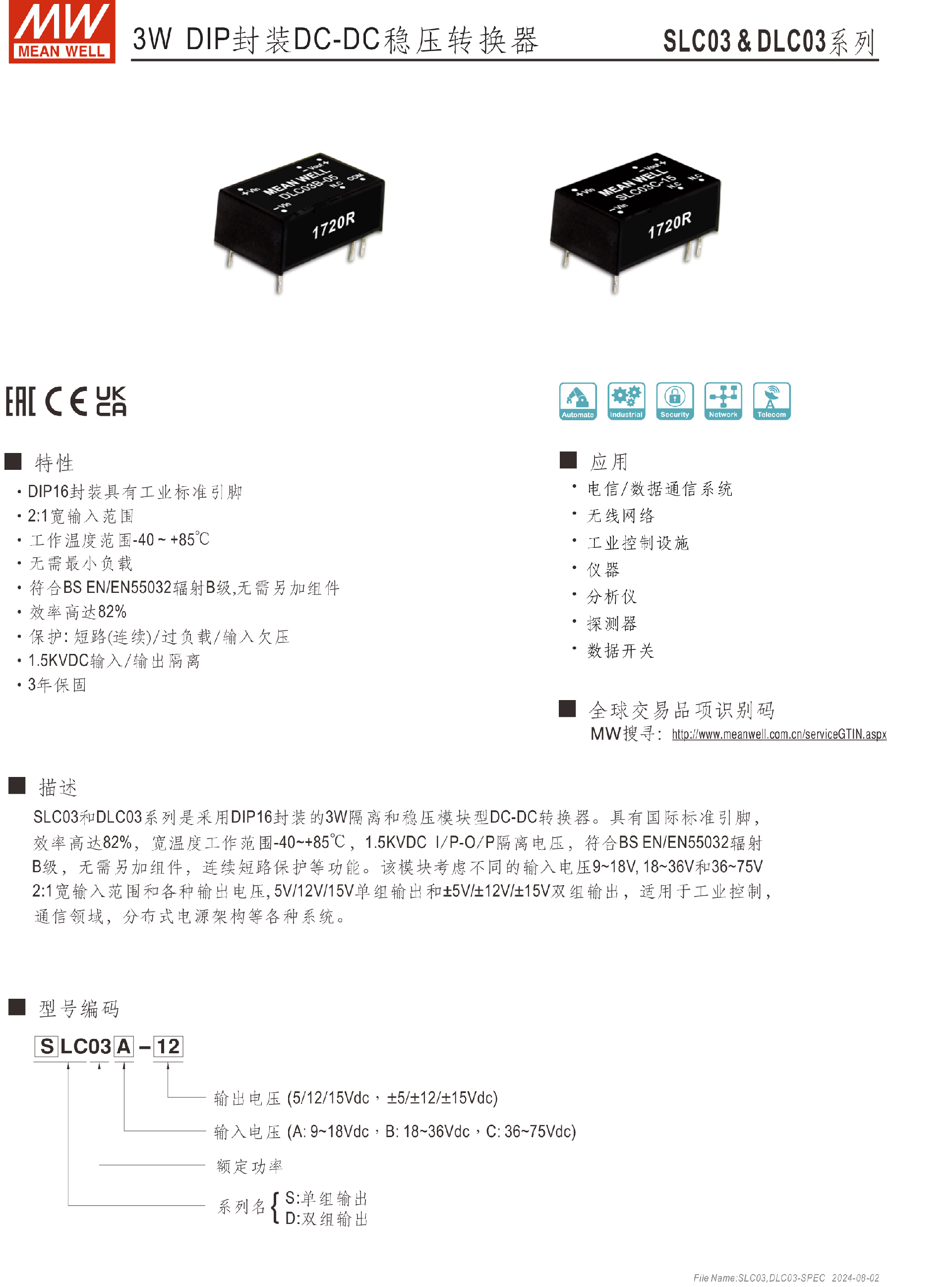 明緯電源SCWN06系列單組DCWN06系列雙組6W DIP封裝DC-DC穩(wěn)壓轉(zhuǎn)換器