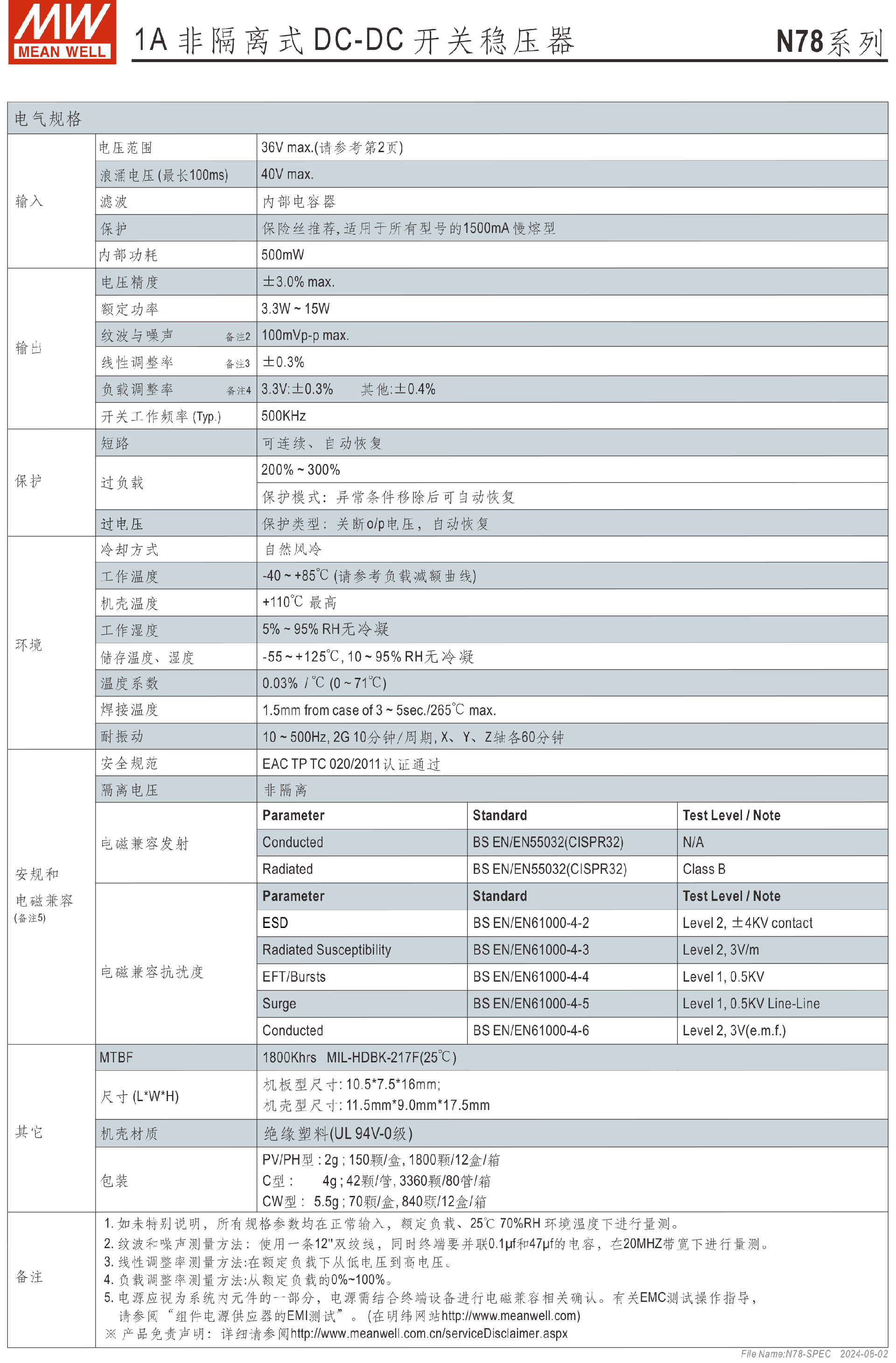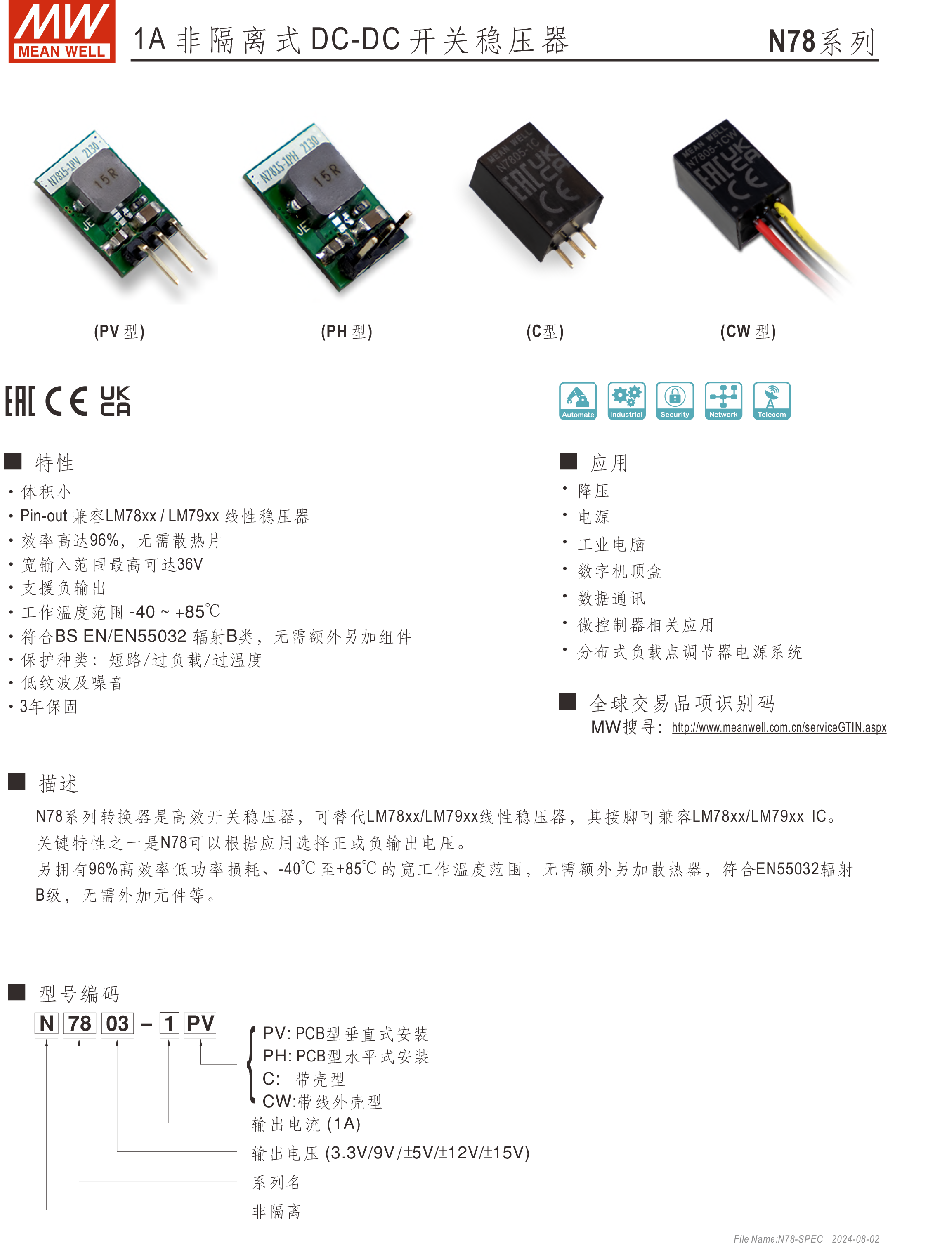 明緯電源N78系列1A非隔離式DC-DC開關(guān)穩(wěn)壓器-N78系列—非隔離型-東莞市誠緯實業(yè)有限公司-