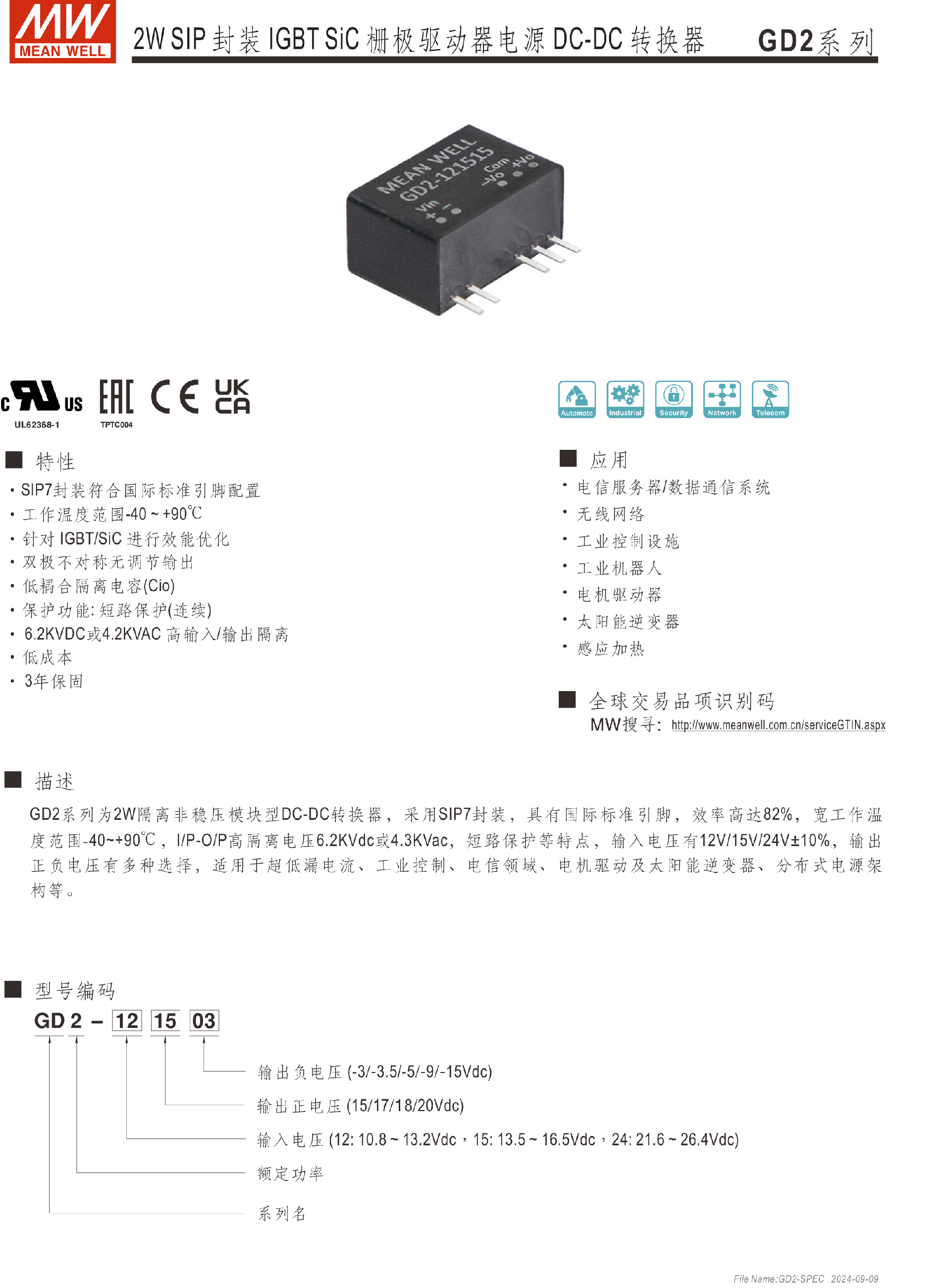 明緯電源SMU02系列2W DC-DC不穩(wěn)壓單組輸出轉(zhuǎn)換器