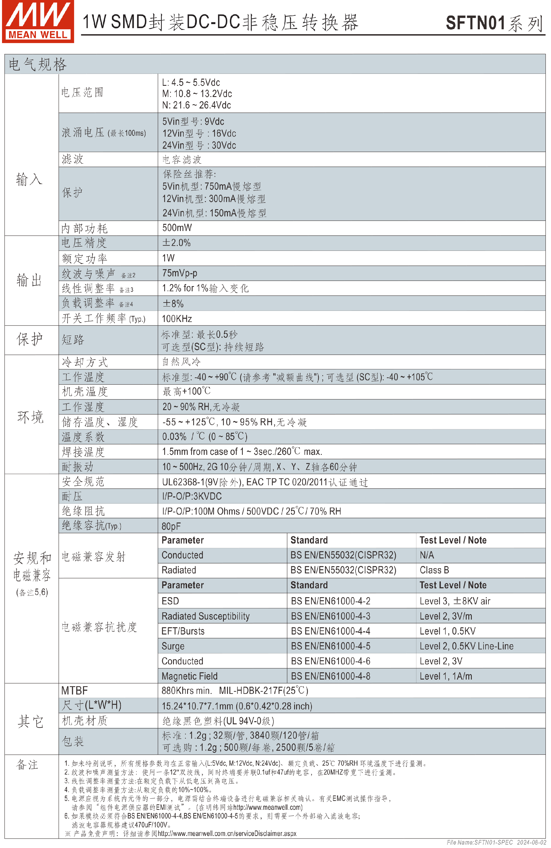 明緯電源SFTN02-N系列2W SMD封裝DC-DC非穩(wěn)壓轉(zhuǎn)換器