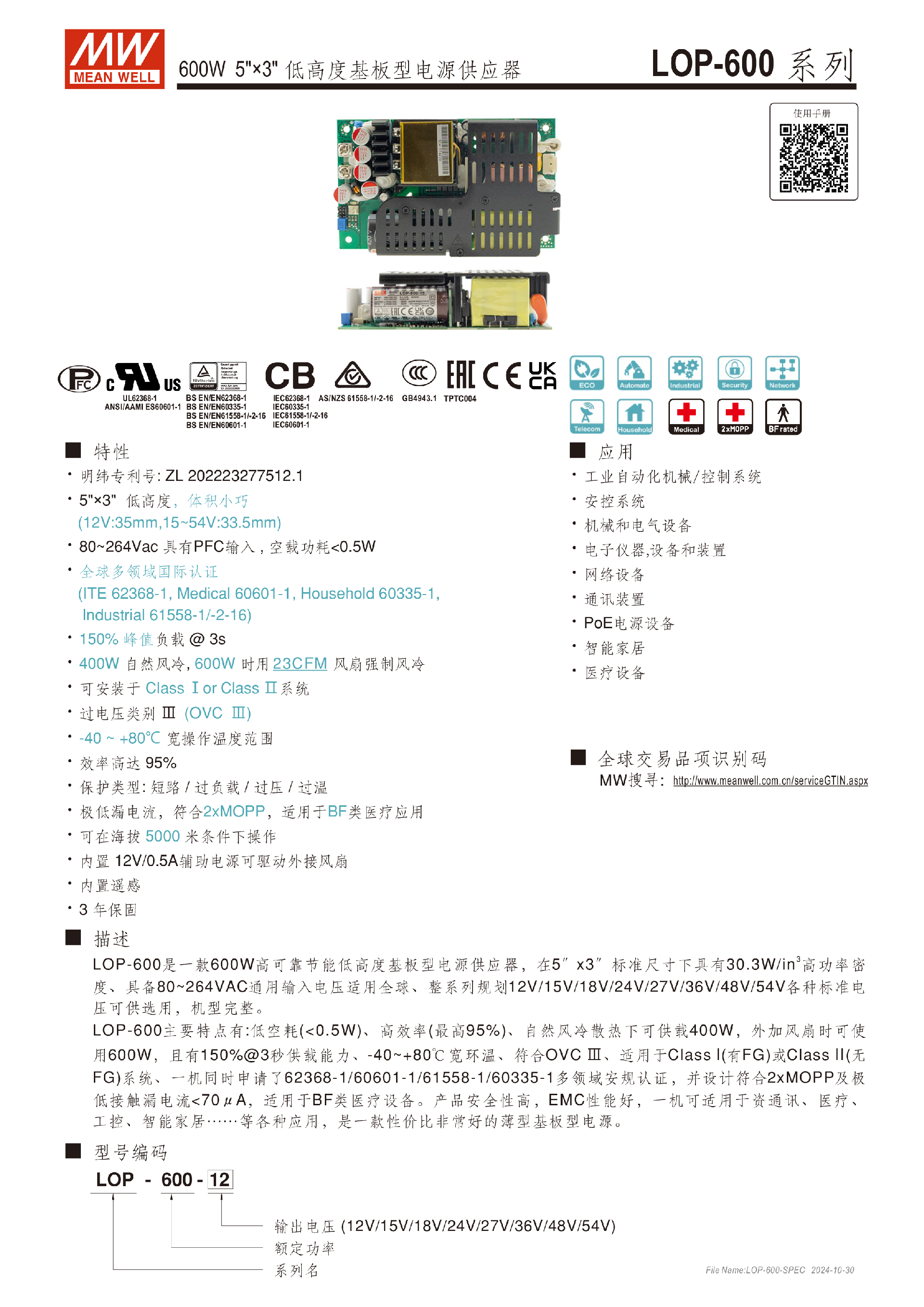 臺(tái)灣明緯LOP-600系列基板型電源供應(yīng)器醫(yī)療用電源-醫(yī)療用-東莞市誠(chéng)緯實(shí)業(yè)有限公司-