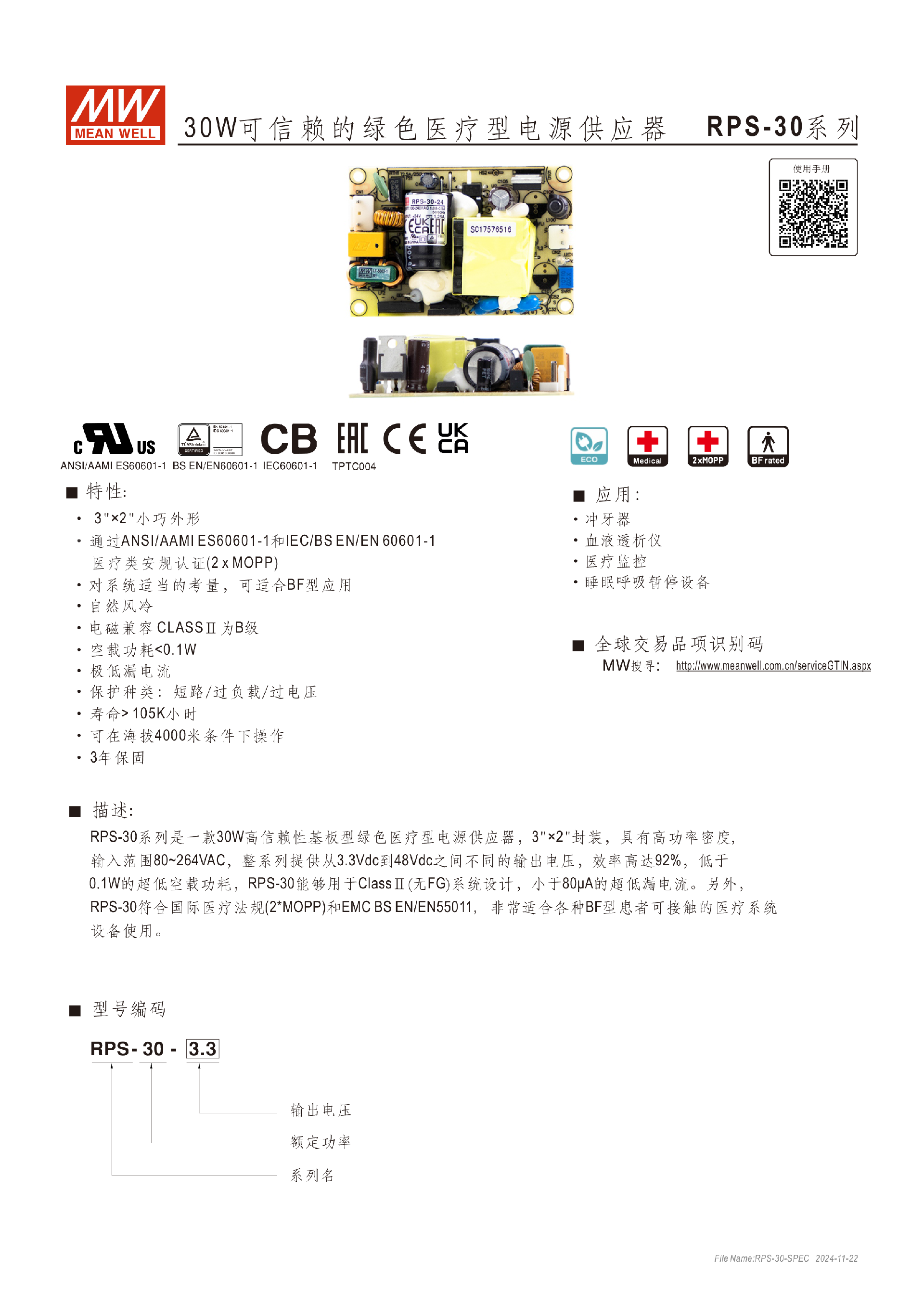臺灣明緯RPS-30系列30W醫(yī)療電源供應器-醫(yī)療用-東莞市誠緯實業(yè)有限公司-
