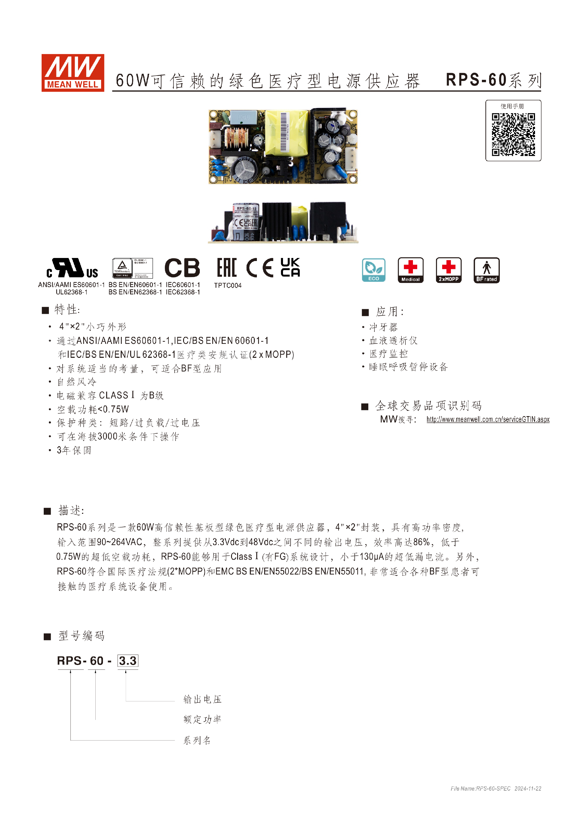 臺(tái)灣明緯RPS-60系列60W醫(yī)療型電源供應(yīng)器-醫(yī)療用-東莞市誠(chéng)緯實(shí)業(yè)有限公司-