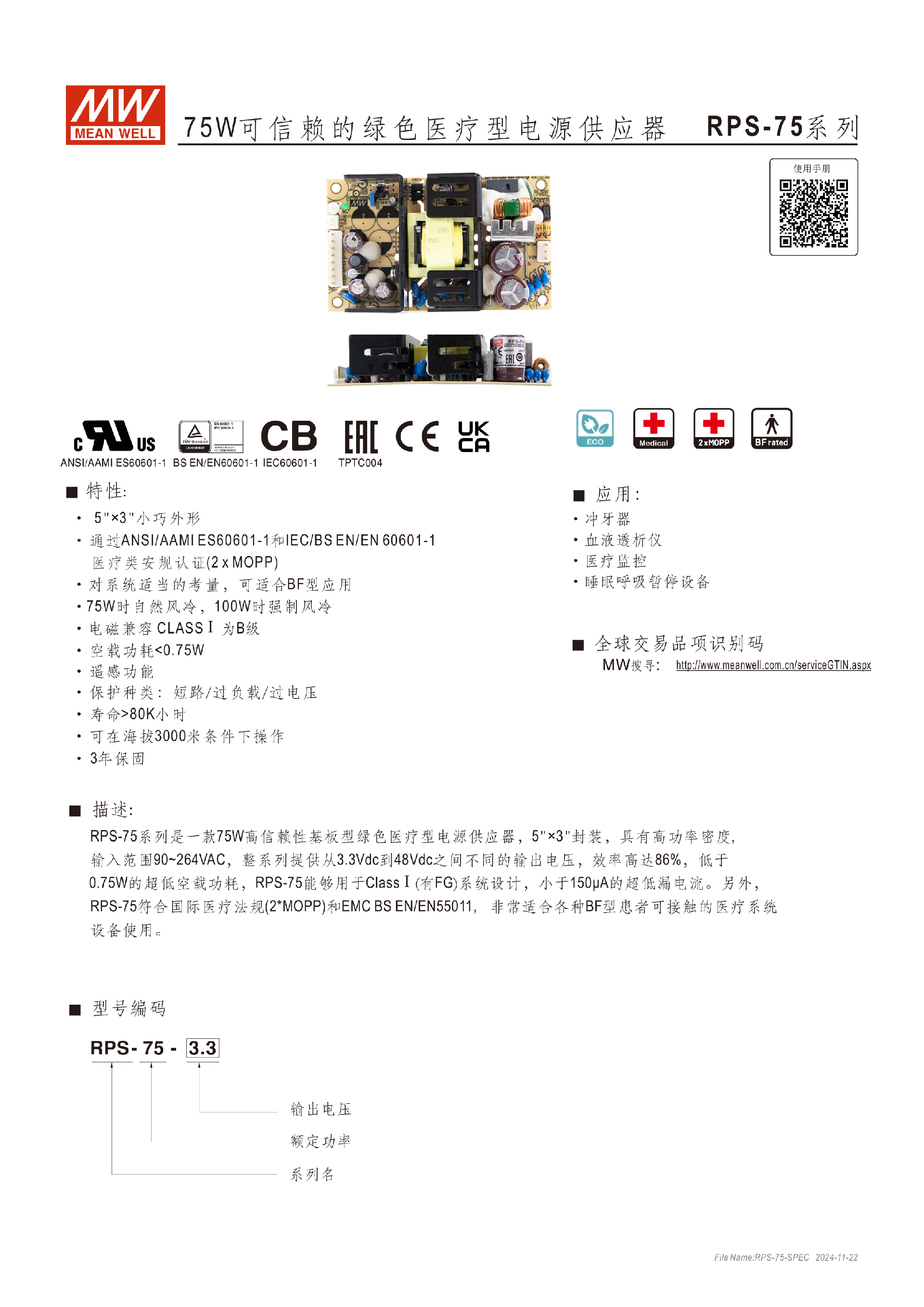 臺(tái)灣明緯MPM-05系列醫(yī)療封閉型電源