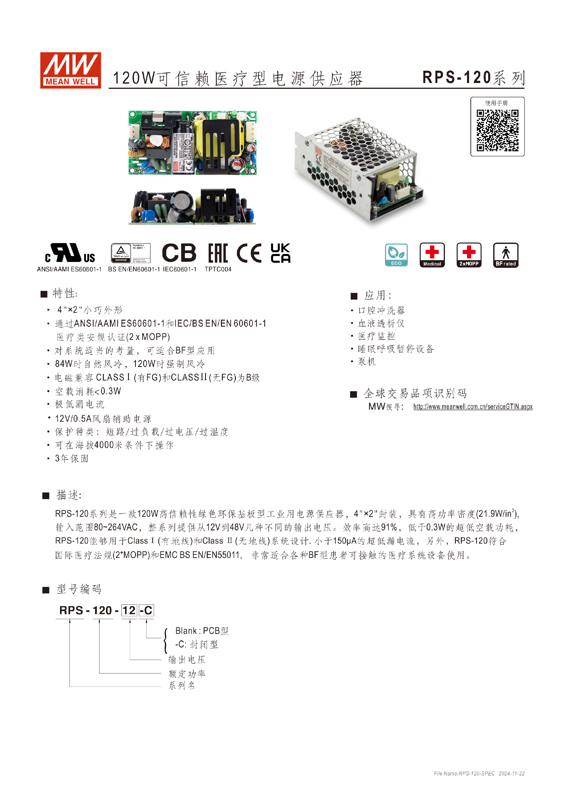 臺灣明緯RPS-120系列120W醫(yī)療型電源供應器-醫(yī)療用-東莞市誠緯實業(yè)有限公司-