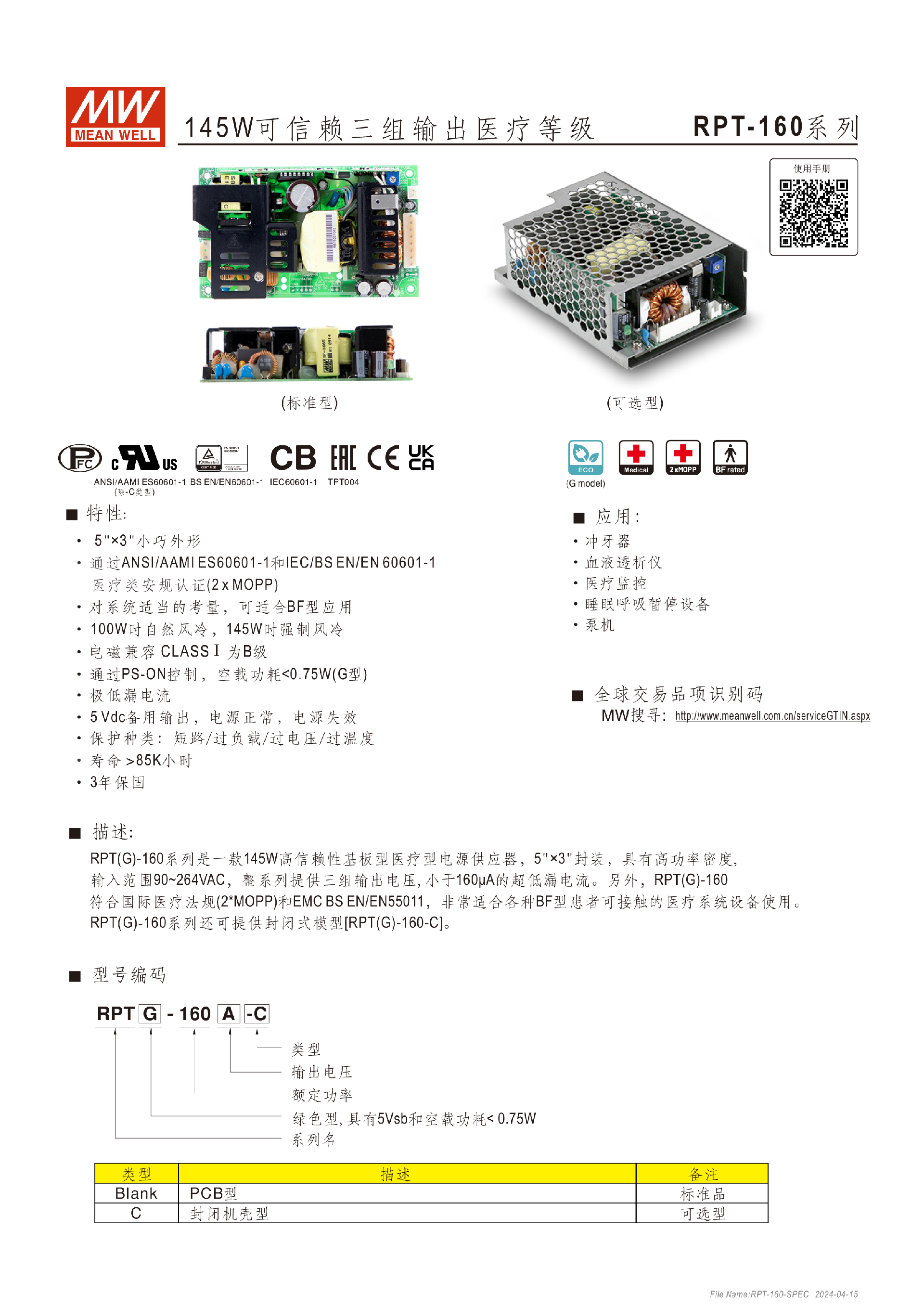 臺灣明緯RPS-300系列300W醫(yī)療電源供應(yīng)器